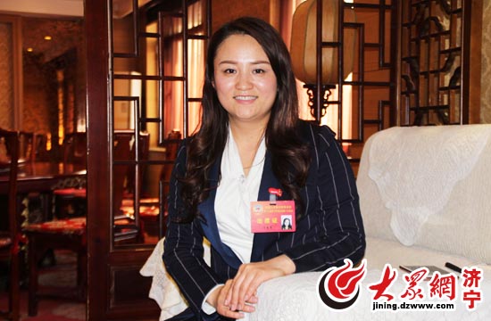政协会上政协委员方春秀向记者介绍自己的提案