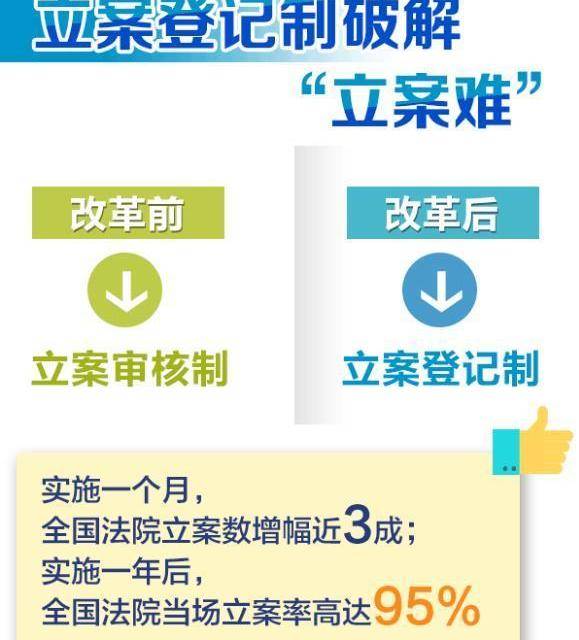 去年5月1日,立案登记制改革在全国法院正式实施后,效果立竿见影。仅一个月,全国法院立案数增幅近三成,其中,行政案件数量同比增长221%;一年后,全国法院收案数增长28%,当场立案率高达95%;2016年上半年,全国法院新收各类案件1002.9万件,首次突破千万件。有案不立、拖延立案、年底不收案等现象基本消失。