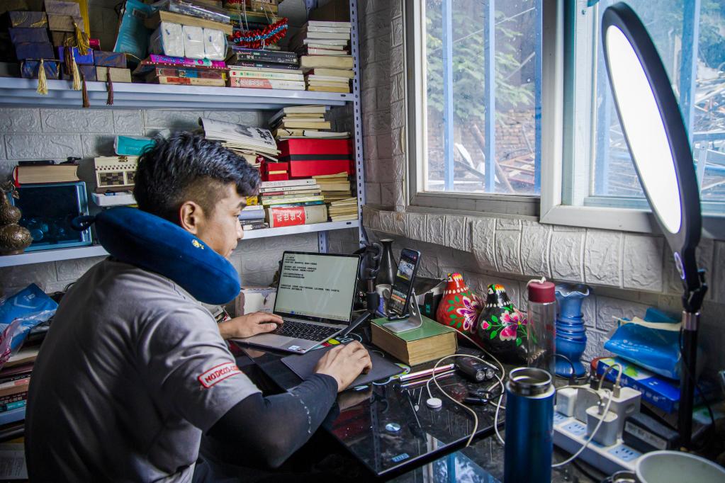刘阿楠在他的工作室中进行视频创作。(李树锋 摄)