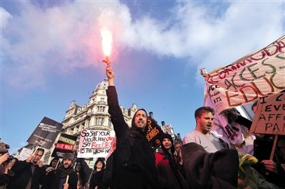 伦敦数千学生抗议学费上涨引发骚乱2014-11-24 16:17