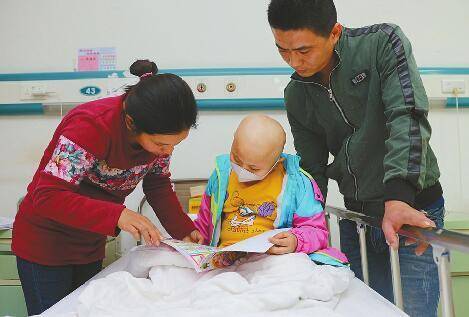 她,2岁患白血病后,在医院长大、学会走路说话她,经历过48次化疗,5岁才重新长出头发她,入学前病情复发,父亲配型成功却再掏不起手术费她,会用“药很香”安慰妈妈,但也会说出自己的小心愿——小薇佳和爸爸妈妈一起看书 王汗冰 摄