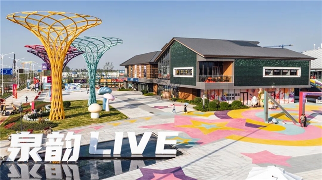 鹊华中新园作为国内首座中新合作温室花园综合体,其14米高“黄河之水天上来”瀑布、引种50余种珍稀植物的温室雨林馆,以及山东首座官方授权鱼尾狮地标,成为中外文化对话的象征。泉韵LIVE以“三维水街”营造“一步一景”的沉浸式体验,生态修复区域打造1.2万㎡可上人草坪,古建筑群采用传统榫卯工艺,展现齐风鲁韵的典雅气质。