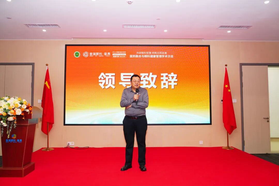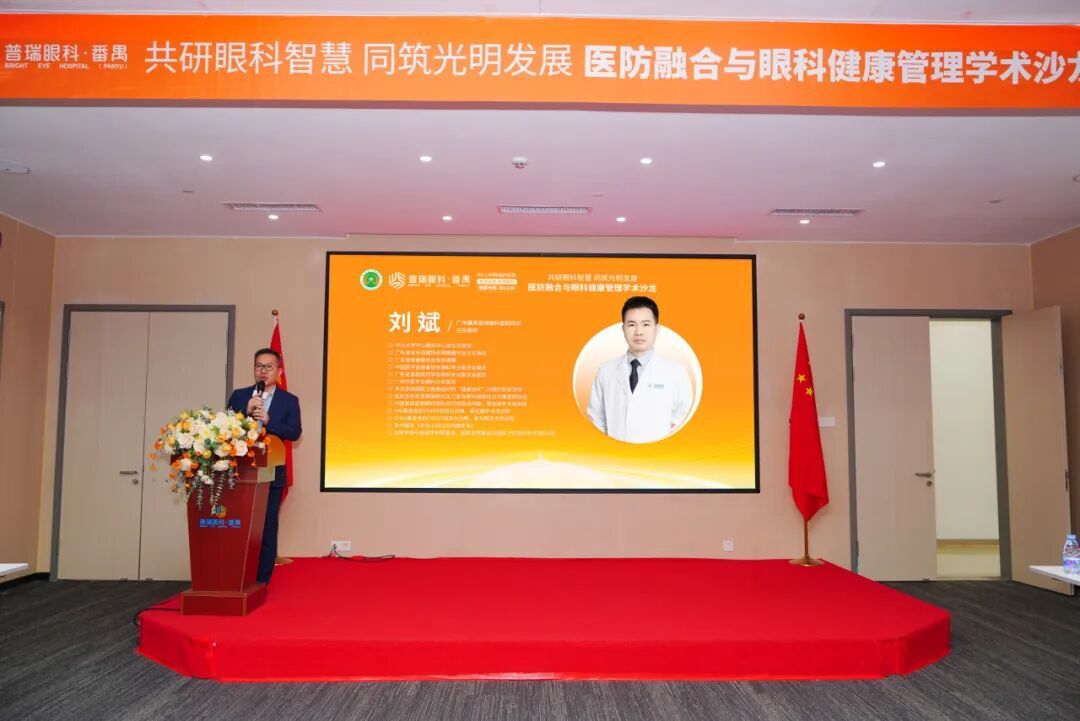 此次学术沙龙正是医院践行这一理念的重要举措。活动现场,番禺普瑞眼科医院院长刘斌在致辞中强调:“眼科疾病的发病率持续上升,既影响群众生活质量,也为公共卫生服务带来挑战。要解决这一问题的关键在于前期的’医防融合‘,要将专科医院的‘精度’与社卫的广度’结合起来。”