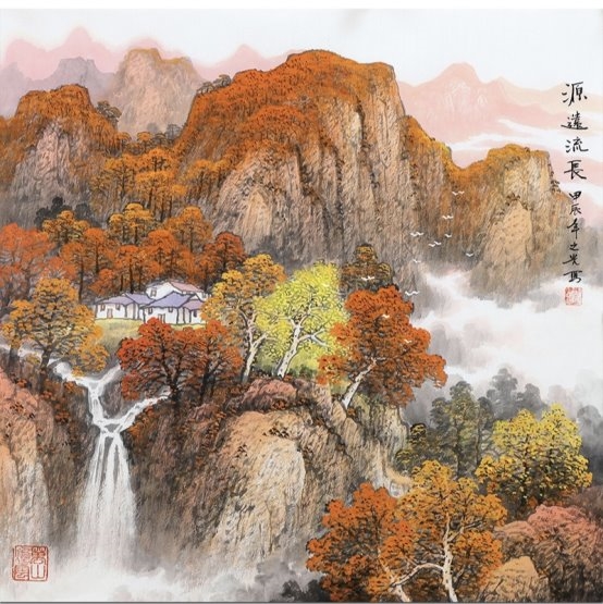 早年旅居加拿大,他将西方色彩理论巧妙融入国画技法,在保留传统笔墨气韵的同时,令画面更加唯美、华丽,极具现代视觉冲击力。他的秋景山水,赭石、胭脂、钛白交融晕染,让人仿佛置身于深秋山林,既见写实之美,更见心境之境。